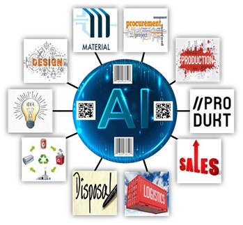 If the whole development process of a product is connected with the latest technology of AI and every information recorded on Blockchain the efficiency of production, logistic, and further processing of this product with be enhanced significantly as well as the circular economy will profit from the information available to reduced the environmental impact of the product and the carbon footprint.
