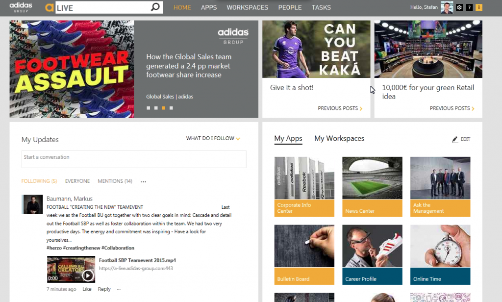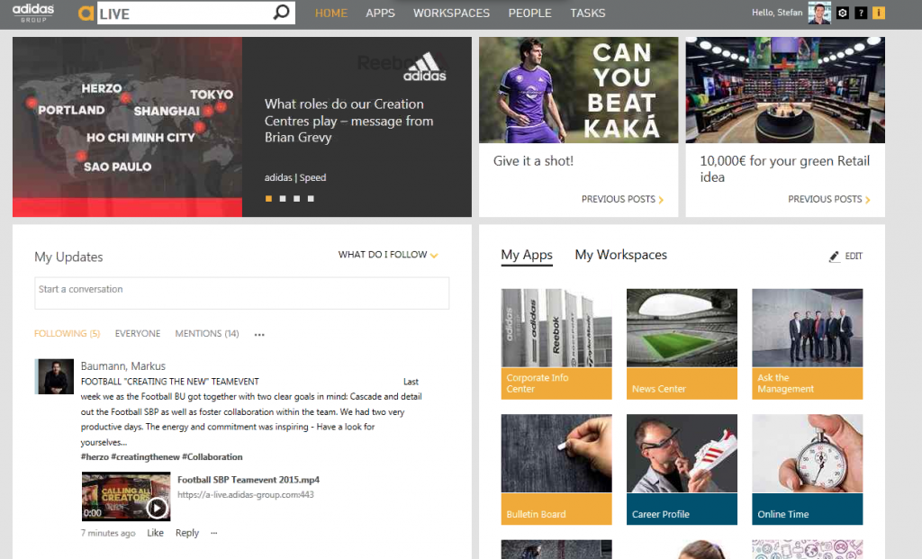 The new generation of employees demands the same level of intuitive technologies to connect and communicate with their colleagues that they use in their personal lives. In 2012, to meet the expectations of their young workforce adidas Group’s communications and IT teams started to work together on a-LIVE, the company’s new SharePoint 2013-based internal platform.