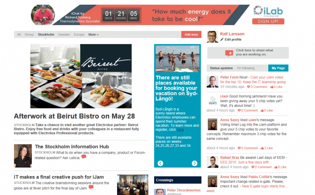 Ralf Larsson is Electrolux’s Director of Online Employee Engagement and Development. His live tour focused on E-gate, the company’s internal platform based on IBM Connections.