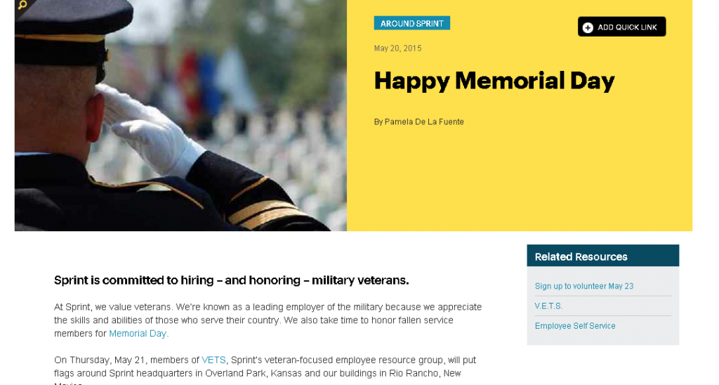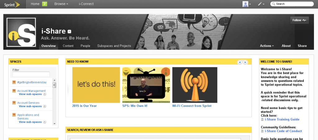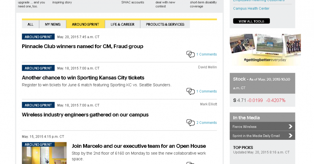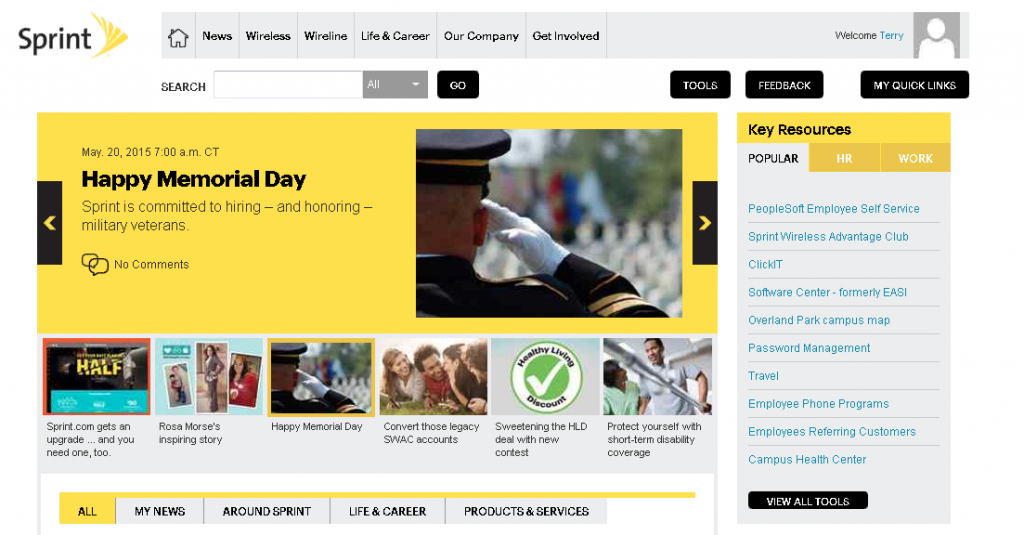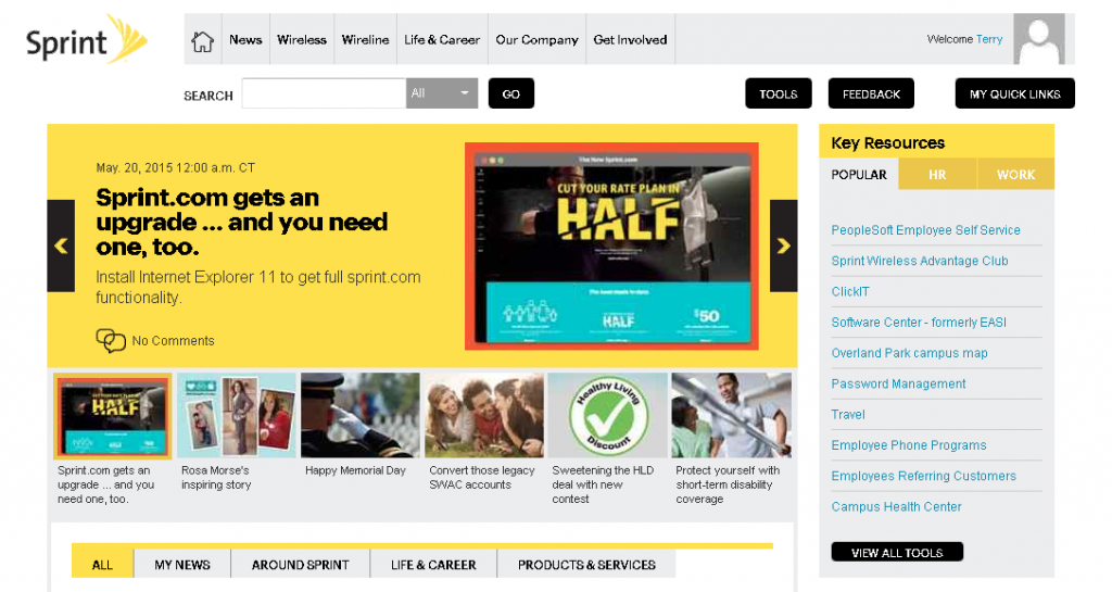 Sprint’s internal platform is among the 2015 Intranet Design Award Winners identified by Nielsen Norman Group (NN/g) at the beginning of the year. After attending the session by Terry Pulliam, Director of Communications at Sprint, I could figure out why the team at the US telecoms giant was given such a recognition.