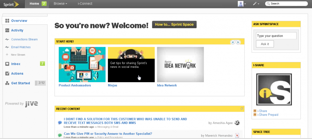 Equally important, Sprint’s platform supports ideation-collaboration based on the concept of crowdsourcing. Whenever they have an idea that could help improve the business, employees can submit their suggestions in the Idea Network space.