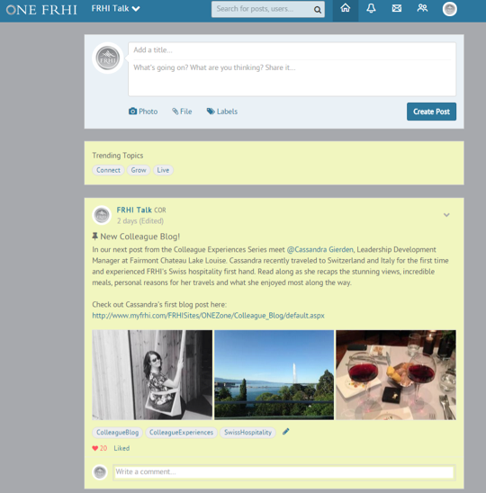 As any other enterprise social network, FRHI Talk can allow users to create groups tailored to their specific purposes. But, “we do not have groups that way,” says Paraschiv.