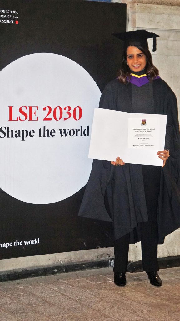 Alongside my athletic career I made sure to pursue my education this is a matter that has been encouraged by my family and also within myself I have a passion for academia and I decided to go abroad to further my education and chose London due to the high calibre of universities there. I studied social in public communication at the London School of Economics (LSE) and that was quite an enlightening experience I enjoyed the academic discussions and developing a thesis exploring the make-up of the Bahraini society and our norms. My studies at the University of the Arts London covered visual arts which is also a passion and is more towards the creative side. Studying abroad I believe teaches you a lot of the aspects that I have already gained through my football career which is discipline, commitment, and following through with setting aims, as well as pursuing them despite challenges. I also joined up with a local football club side there called Actonians Ladies Football club they play in the English leagues and that was also an experience getting exposed to a different style of football and a different team atmosphere as well.