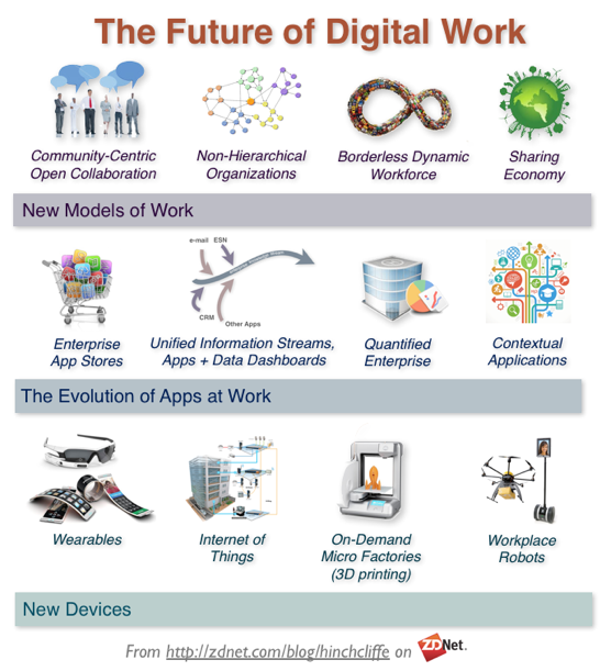 Chief Strategy Officer at adjuvi Dion Hinchcliffe, gave a informative talk on how enterprises are preparing for the future of digital work. He talked about new models of work from community-centric open collaboration to non-hierarchical companies, borderless dynamic workforce, and the sharing economy. He also pointed to the evolution of apps at work, and with it, the rise of enterprise apps stores, unified information streams, the quantified enterprise and contextual applications. Finally he included the arrival of new devices from wearables to workplace robots.