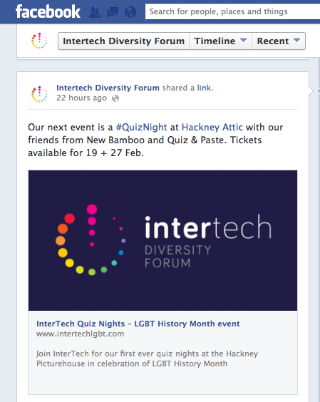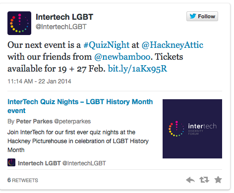 We’ve also had success with Twitter, for example, the CEO of Manchester based LGBT charity, the Albert Kennedy Trust, made a request for people who had tech and social media skills to help him set up a program for the business. He received a lot of interest, with some of our members tweeting to get in touch. Ultimately, some of them are now working with him to develop a social media plan, which is beneficial for the parties involved and a huge success story for InterTech.